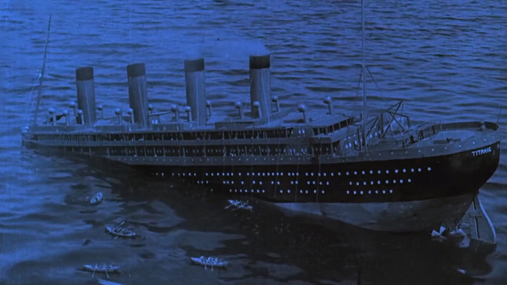 Just a few months after the sinking of the Titanic, director Mime Misu recreated the shipwreck in Berlin and the surrounding area. Tinted scenes and creative special effects escalate the drama until the sinking of the ship, which was staged using a model on a lake near Königs Wusterhausen.