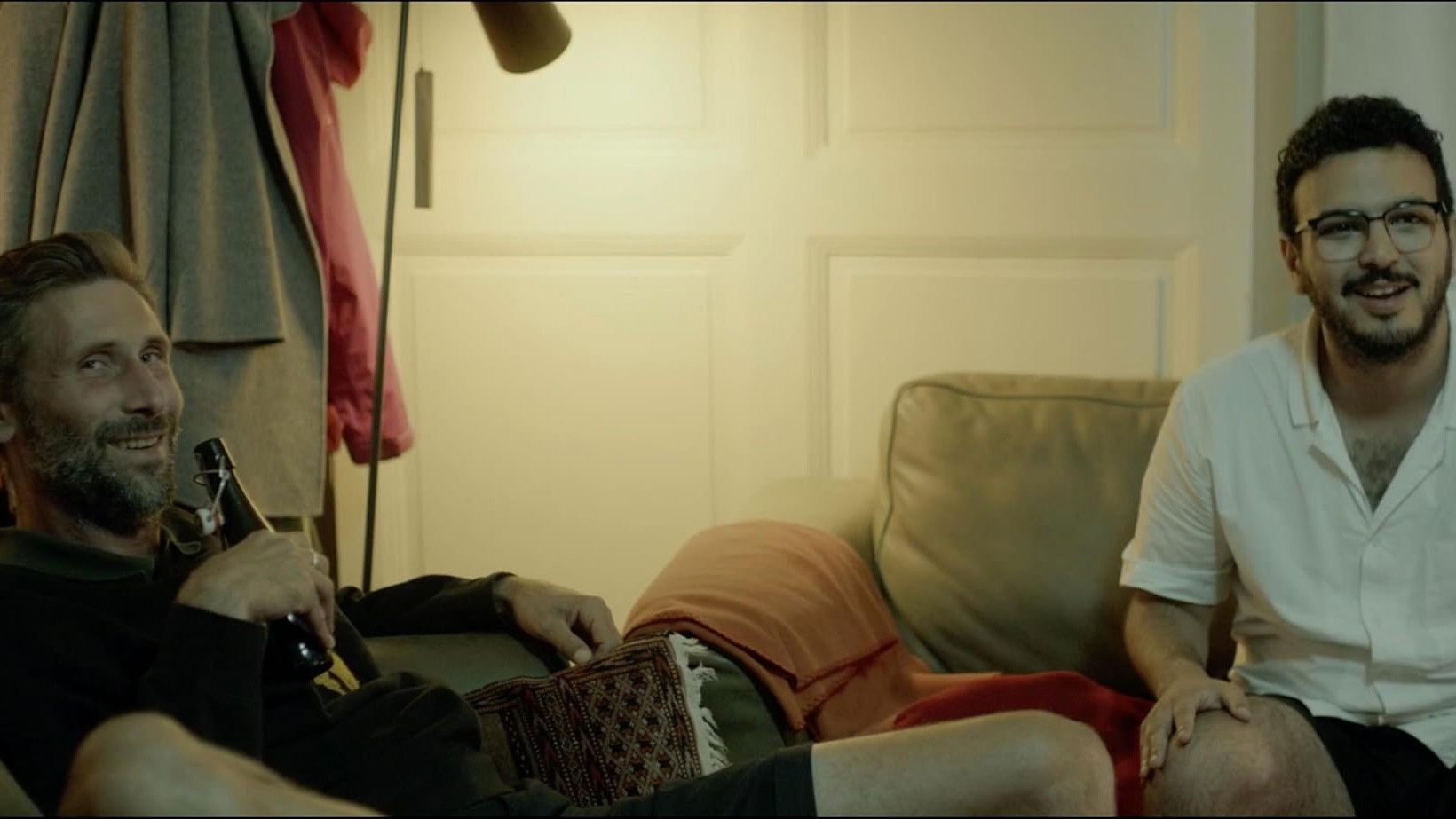 Baptiste's group of friends gather to celebrate his recovery.