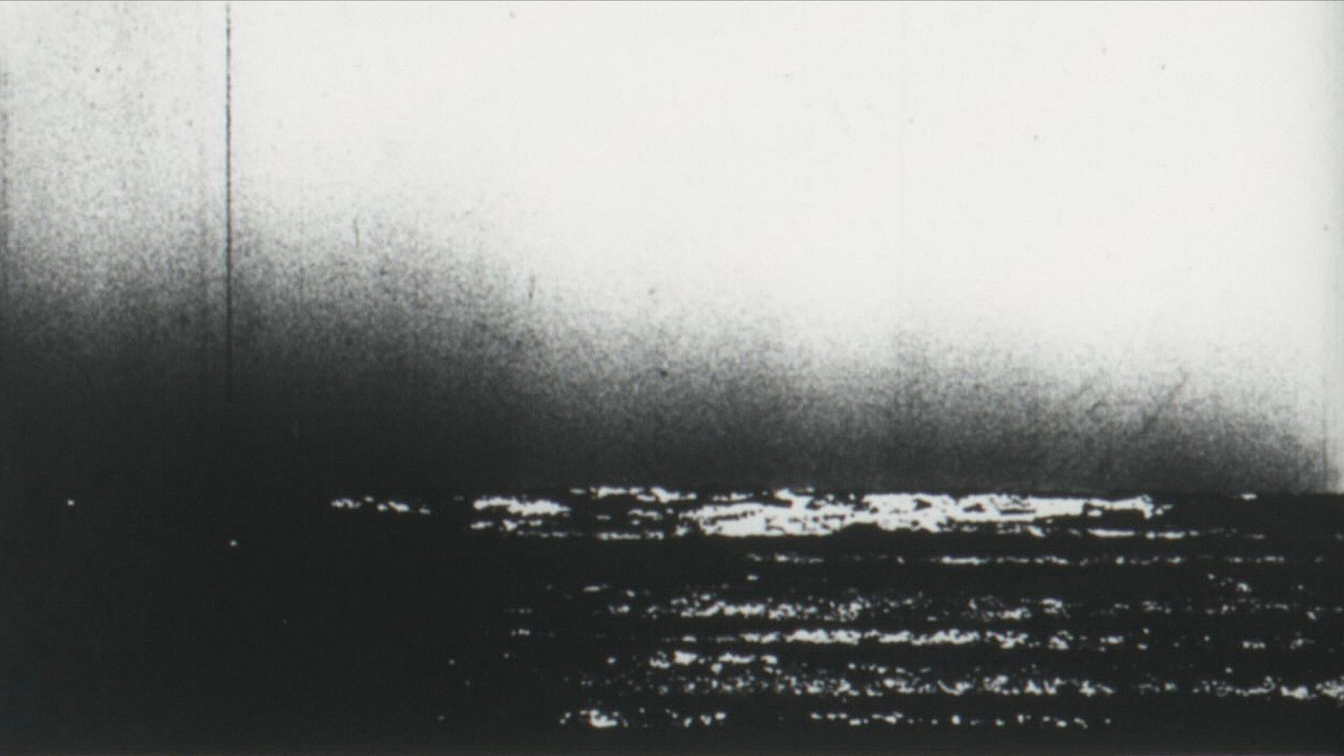 An infinite horizon line and the image of continuous waves... Experimentation with the vertical displacement of the image of a 35 mm film. 35mm film has four perforations per image. If the perforations are offset from the projector window, the image is split in two on the screen: for example, in a face image, the eyes are at the bottom and the mouth is at the top; The image has two displaced parts. To avoid this mistake, this multi-image movie uses collage. The filmmaker assembles an image by perforation (the normal technique is an image by 4 perforations). Therefore, there is never a vertical shift in the projected image.