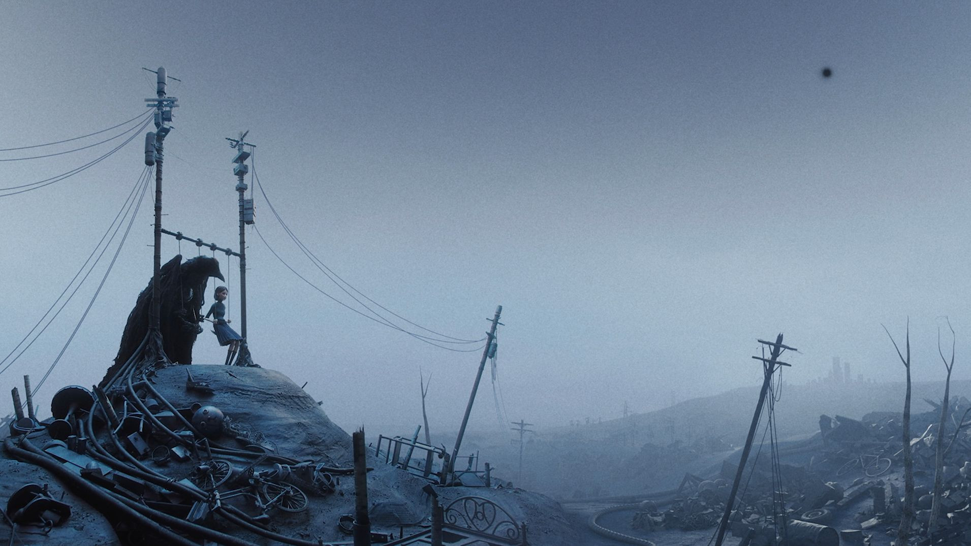 Astrid lives torn between two worlds: a boundless, sterile office and a desolate blue realm composed of trash she struggles to recollect. When she finds a door to her childhood bedroom, she feeds what’s left of it to her only friend, Crow, who wonders how much longer she can live in these fragmented realities.