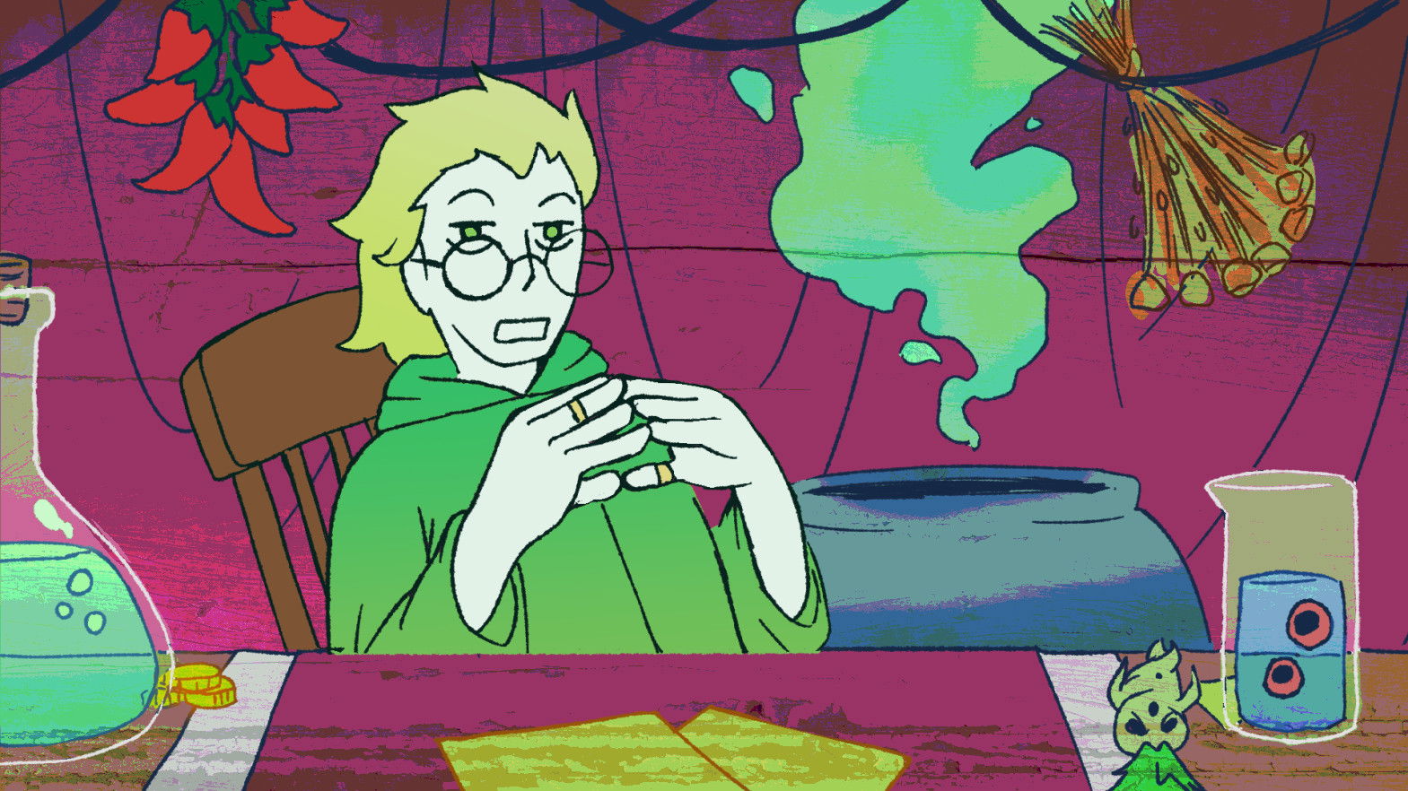 A ”knight” seeks the help of an alchemist in order to become a witch.