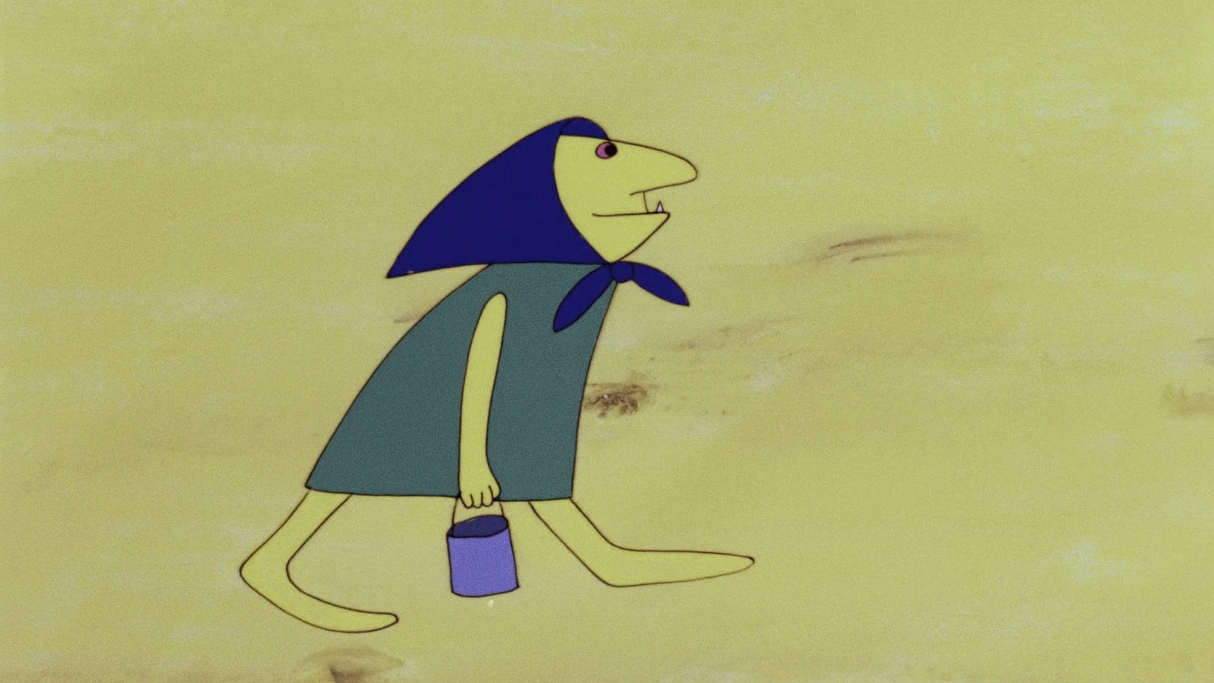 A tiny witch tries to milk an immense cow. Things get out of her control.