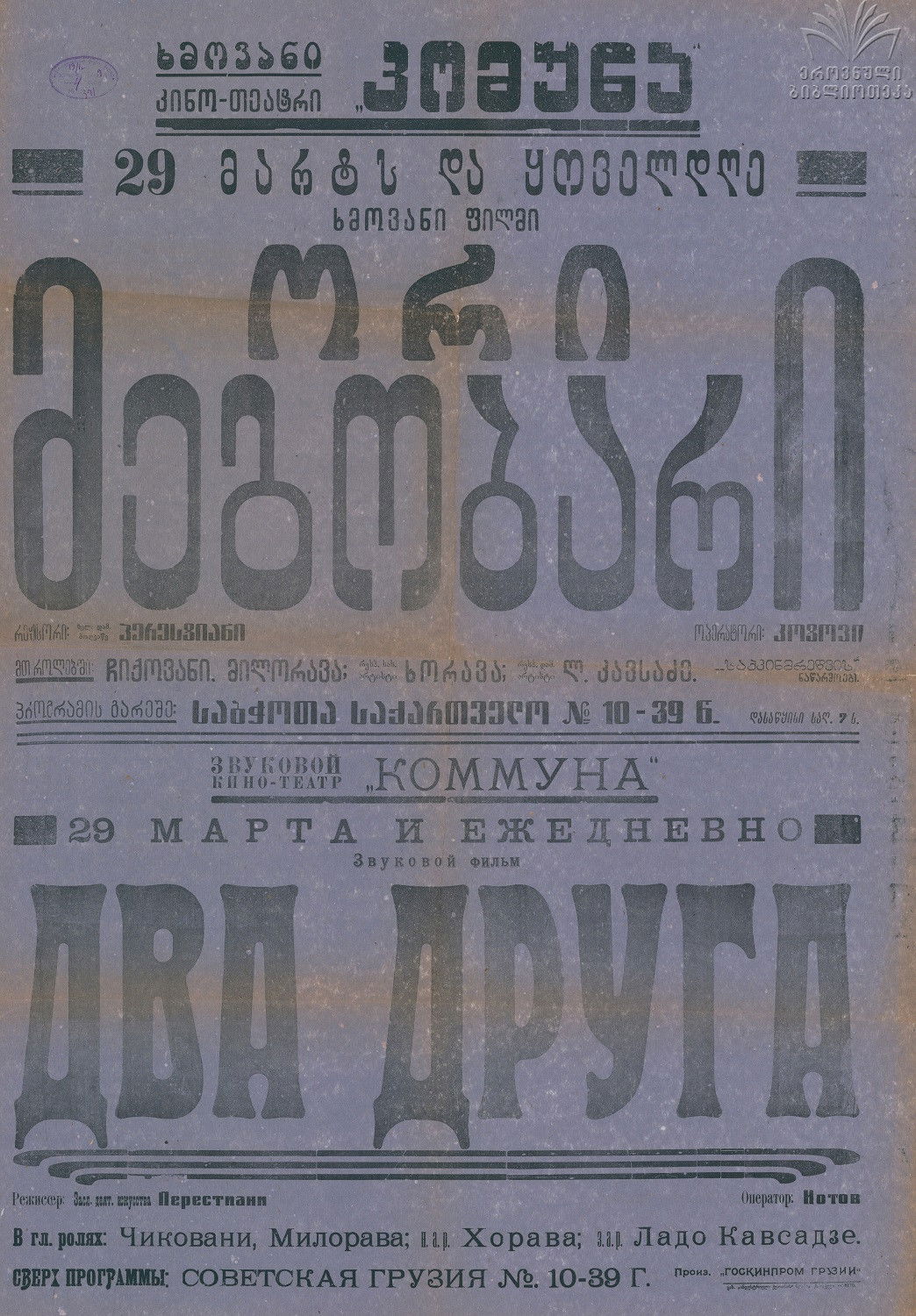 | Movie | 1927 | Ibrahim and Goderdzi | Ilo | |